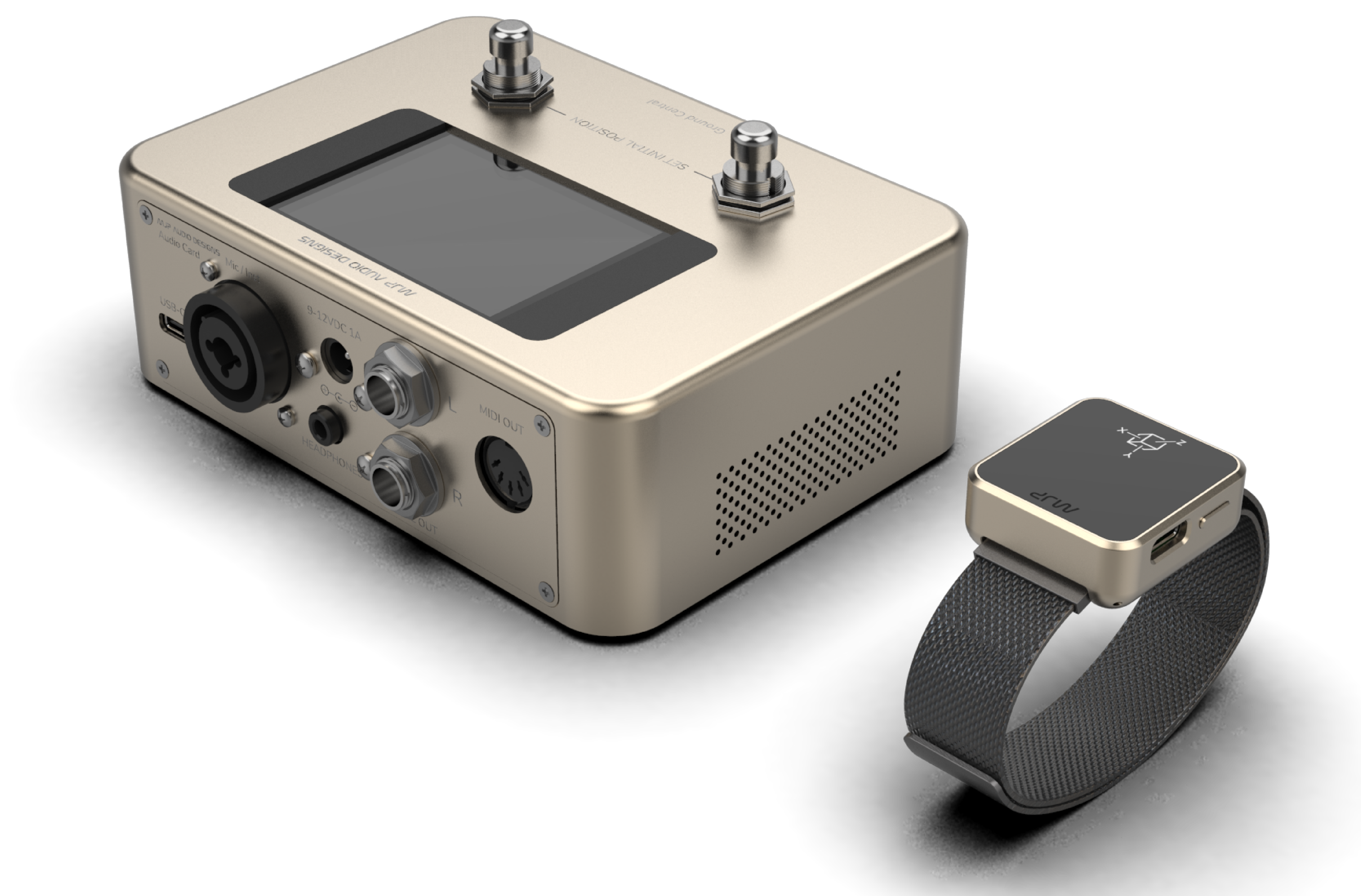The hardware processes audio from instruments and vocals via a dedicated microphone input. On-board FXs are motion-controlled, providing an immersive and interactive experience for both artist and audience.